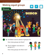 It is a practical real-life problem that the children work in pairs to try to solve. It is encouraged that children use concrete objects during this part of the lesson and gives them time to play, explore and discuss possible strategies