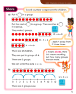 ‘Share’ is the “seeing” stage. It encourages the children to make a mental connection between the physical object they just handled and the abstract pictures, diagrams or models that represent the objects from the problem.